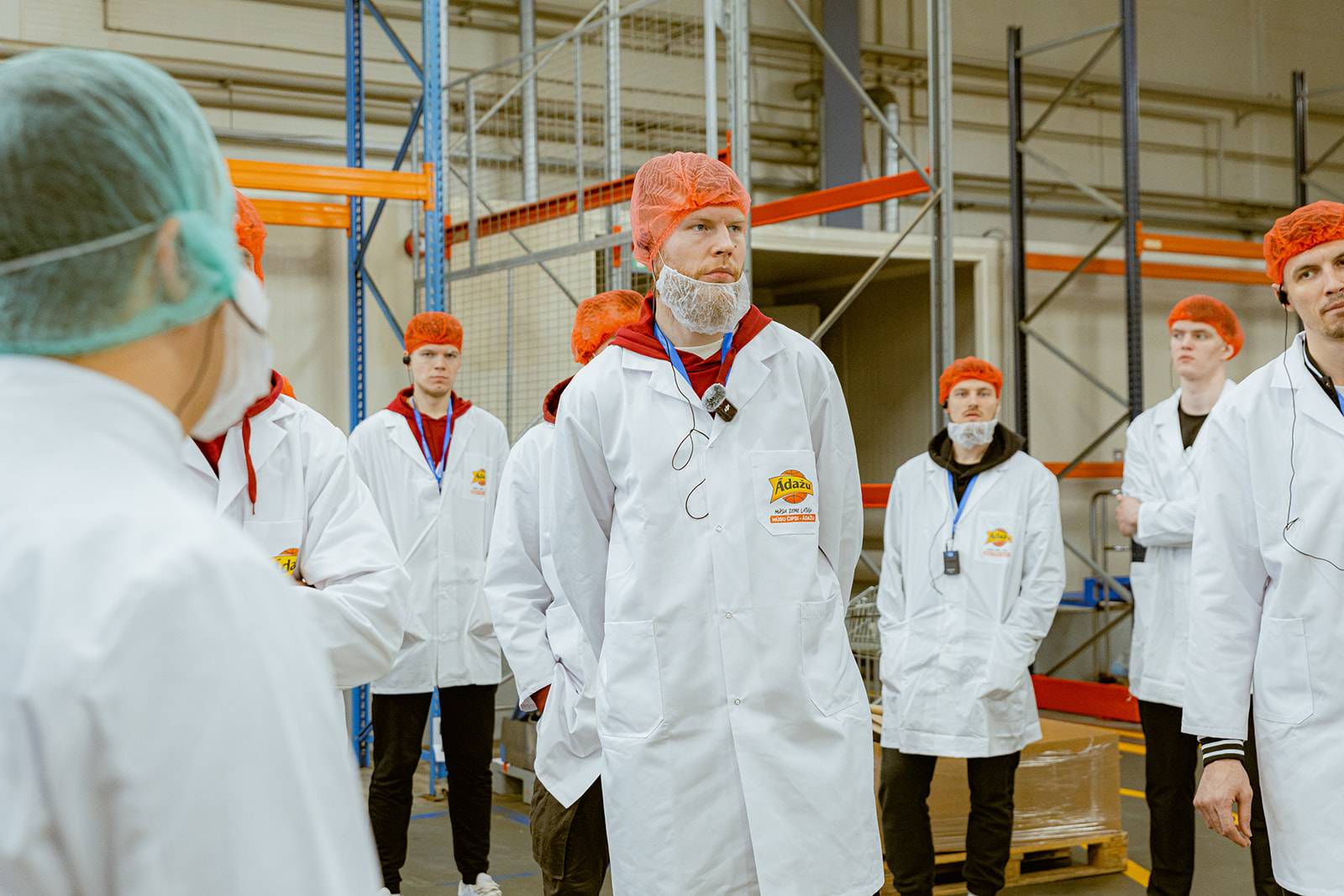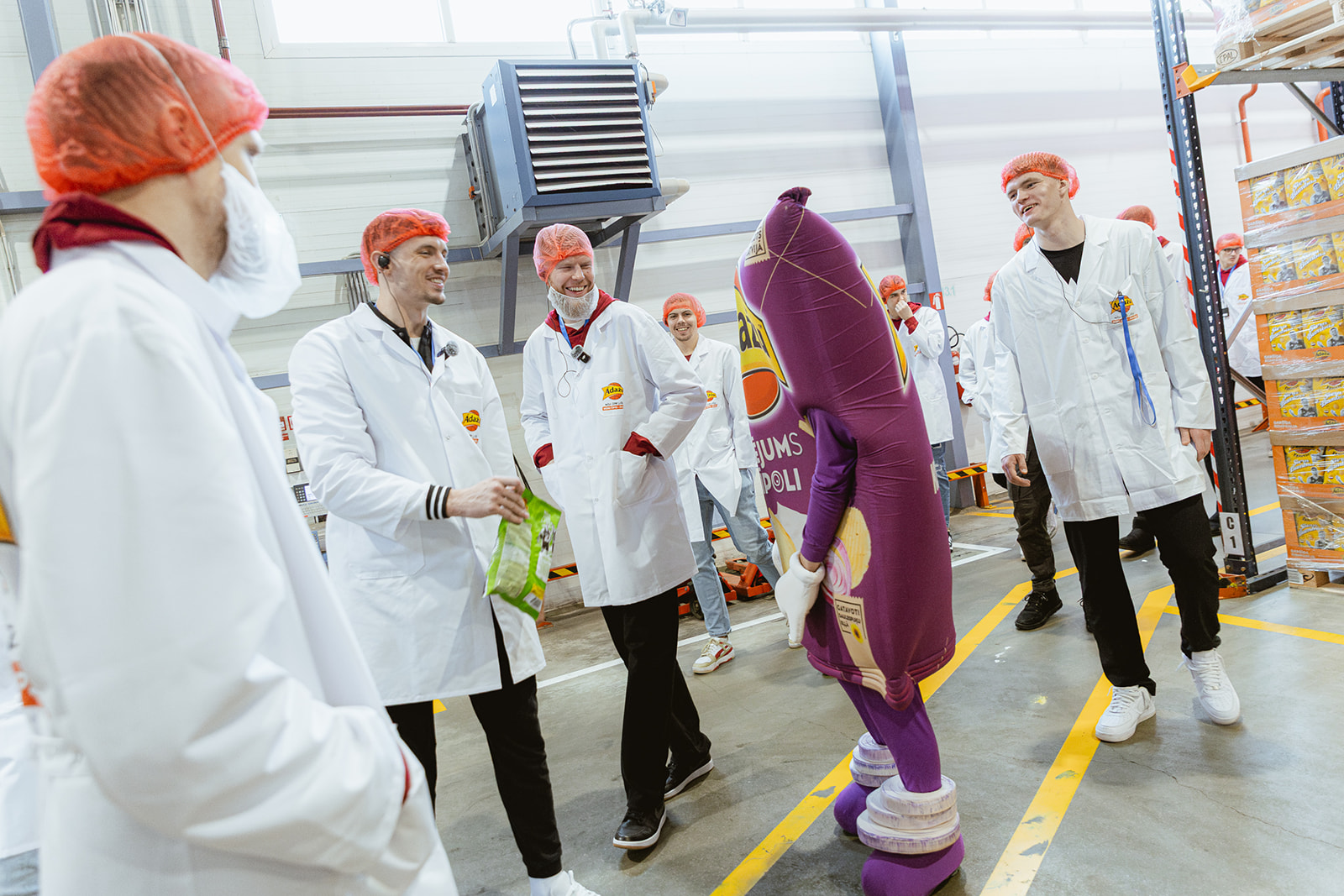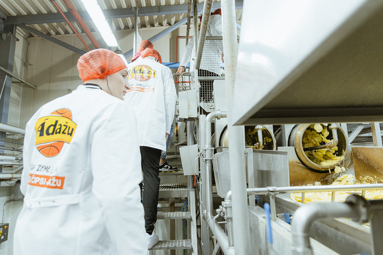 Ciemošanās laikā Latvijas izlases spēlētājiem bija iespēja tuvāk iepazīt “Ādažu” čipsu ražošanas gaitu – sākot no vietējo zemnieku audzētu kartupeļu rūpīgas atlases un sagatavošanas līdz čipsu iepakošanai. Komandas spēlētāji uzzināja, kā tiek nodrošināta produktu kvalitāte un kā dažādas iemīļotas garšas nonāk pie patērētājiem.