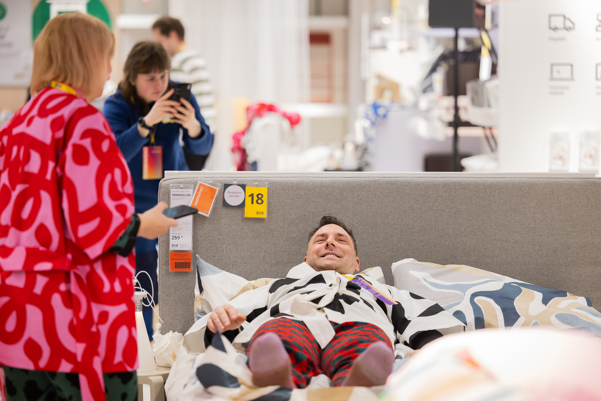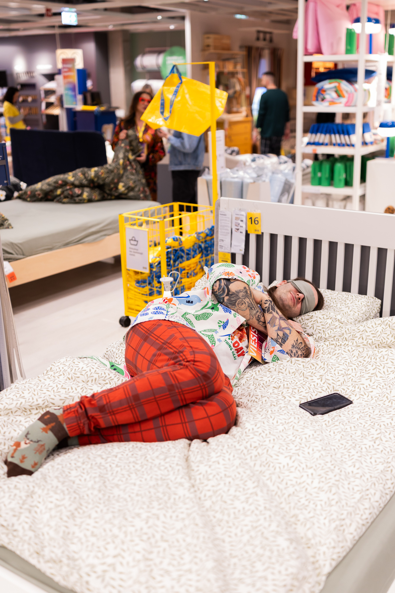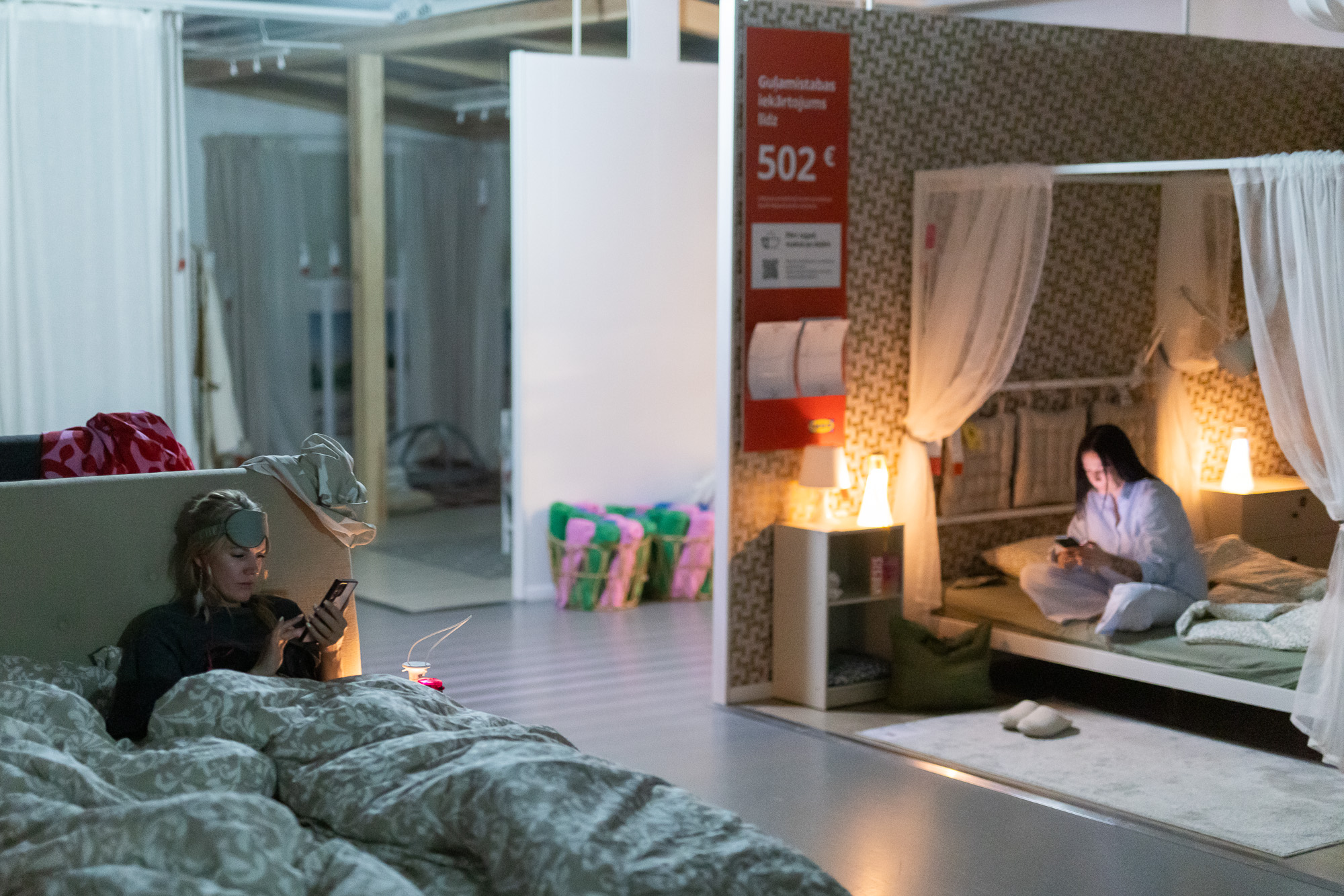 Trešdien, 2. aprīlī, 35 cilvēki nakšņoja IKEA veikalā Rīgā. Dalībnieku vidū bija Zviedrijas vēstniece Latvijā Kārina Hēglunda (Karin Höglund), pavārgrāmatu autore Zane Grēviņa, TV personība Kristīne Virsnīte, cilvēktiesību aktīvists un drag queen Rojs Rodžers, kā arī citi digitālā satura veidotāji un “IKEA Family” kluba dalībnieki.