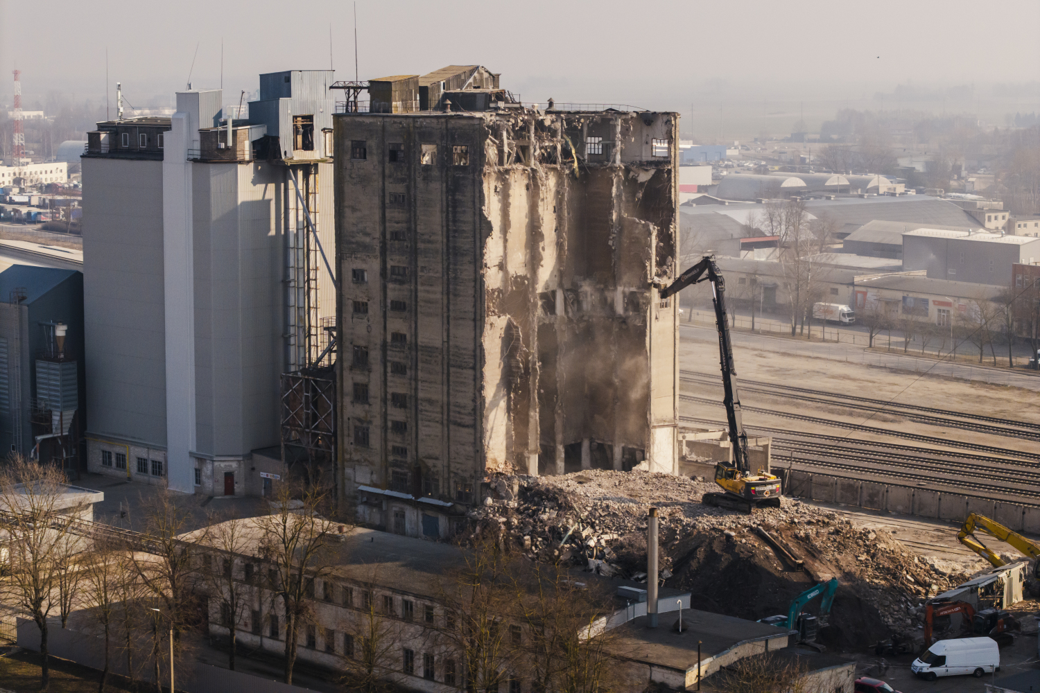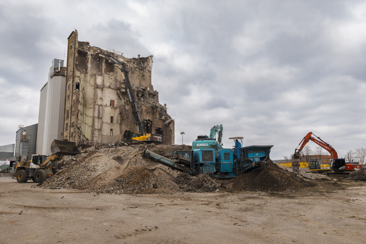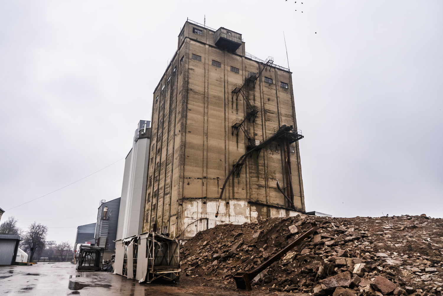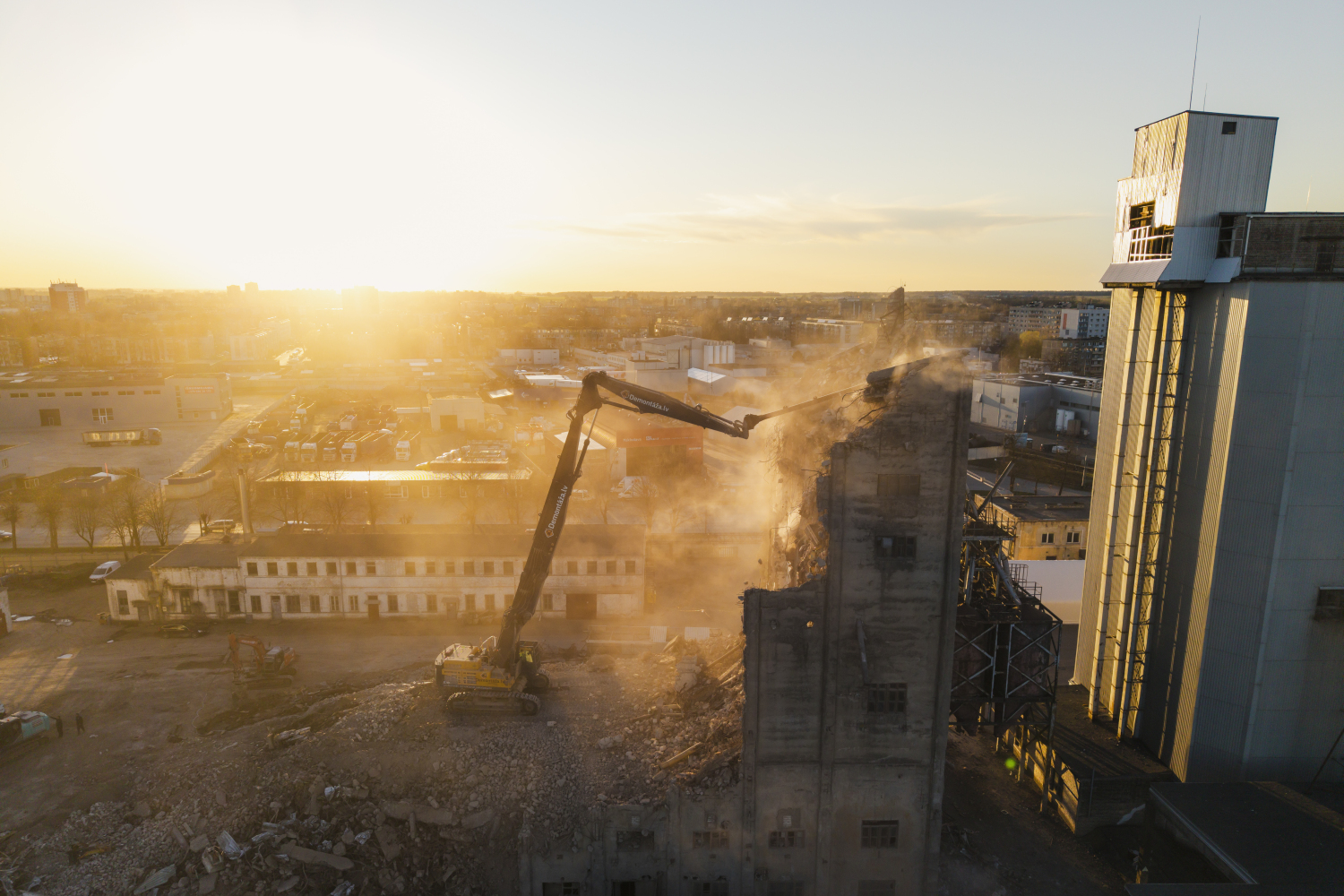 Uzņēmums “Grāvējs” veicis īpaši sarežģītas padomju laika būves demontāžu Lietuvā, nojaucot labības elevatoru Marijampolē Vairāk nekā 60 gadus vecā būve bija daļa no ražošanas kompleksa.