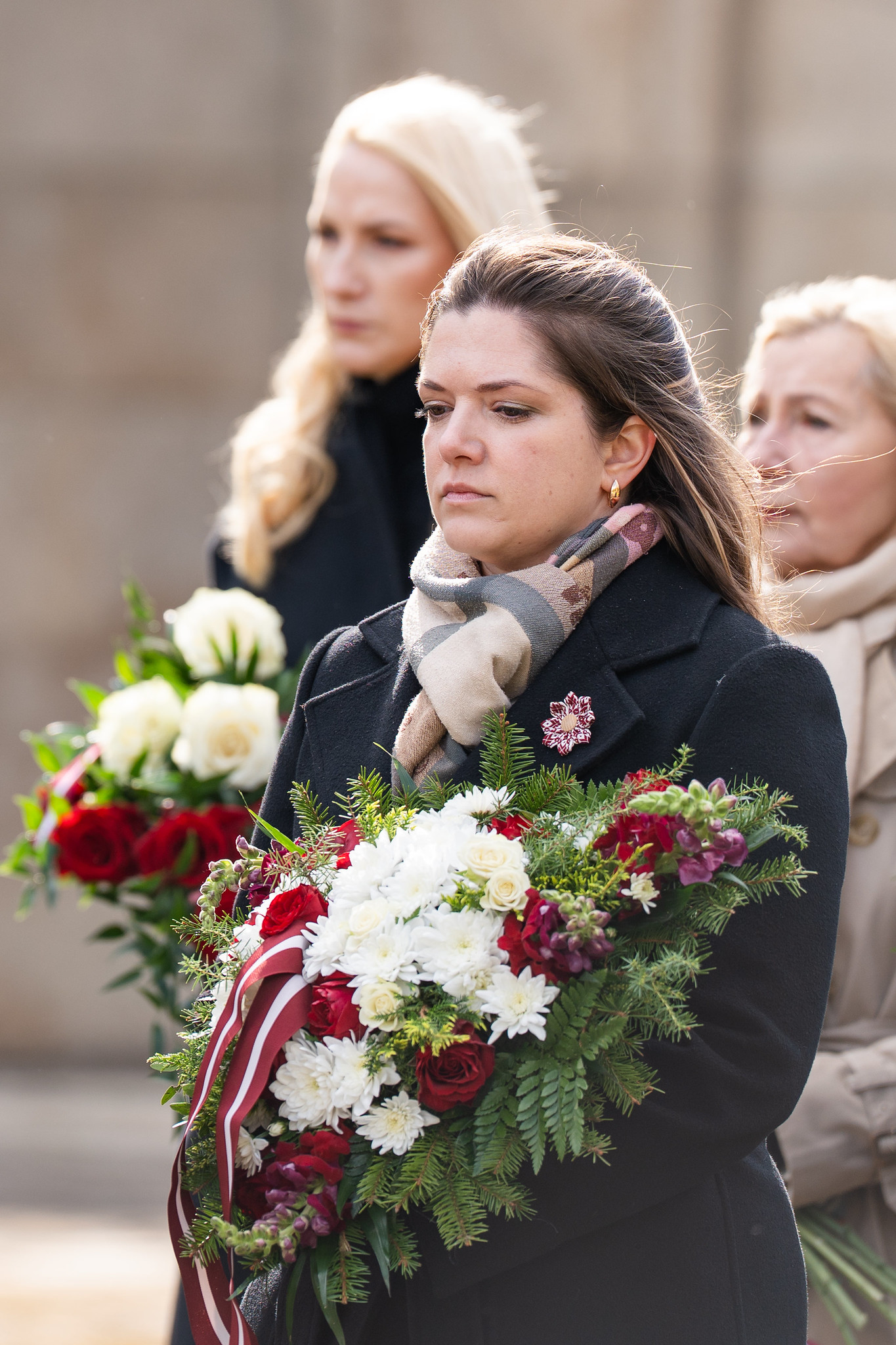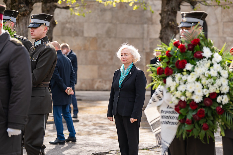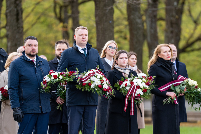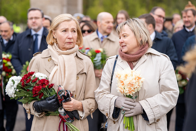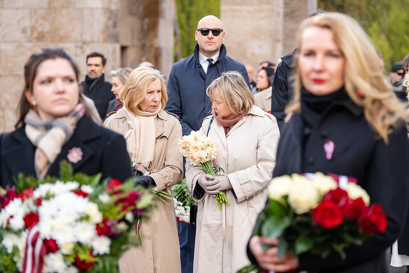 Tāpat arī Saeimas priekšsēdētāja Daiga Mieriņa, citas valsts augstākās amatpersonas, Saeimas Prezidija locekļi un deputāti nolika vainagus Otrā pasaules kara upuru piemiņai Rīgas Brāļu kapos.