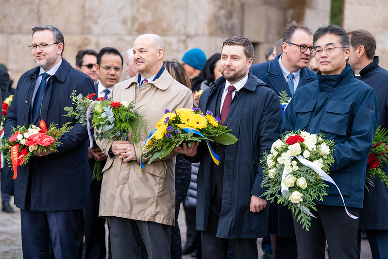 “Daudzas Eiropas valstis tikai 20. gadsimta pēdējā desmitgadē pilnvērtīgi atguva un atjaunoja savu valstu brīvību. Taču 21. gadsimts Eiropai nav nesis mieru. Padomju Savienības mantiniecei – Krievijas Federācijai – citu valstu brīvība, neatkarība, demokrātija un miers nav vērtība. Krievijas sāktais un izvērstais karš Ukrainā tam ir spilgts apliecinājums. Jau vairāk nekā trīs gadus visa demokrātiskā pasaule ir lieciniece pastrādātajām Krievijas zvērībām Ukrainā. Jau vairāk nekā trīs gadus Krievija ar staļiniskām metodēm sēj postu, tirāniju un bailes. Tā cenšas no jauna pārrakstīt savas un visas Eiropas vēsturi, selektīvi veicot vēstures revīziju, manipulējot ar mūsu kopējo Eiropas vēsturi, ar Eiropas kopīgo atmiņu, ar demokrātisko valstu vērtībām,” norāda Rinkēvičs.