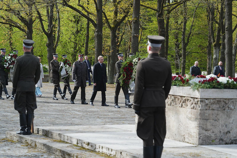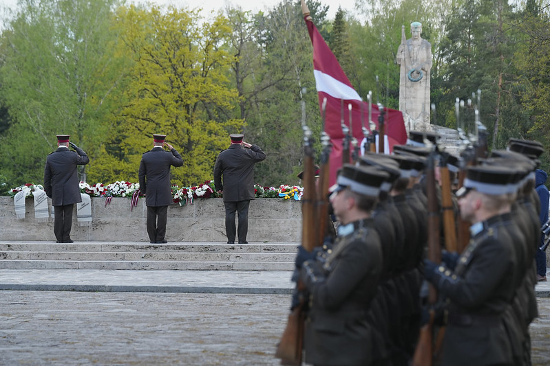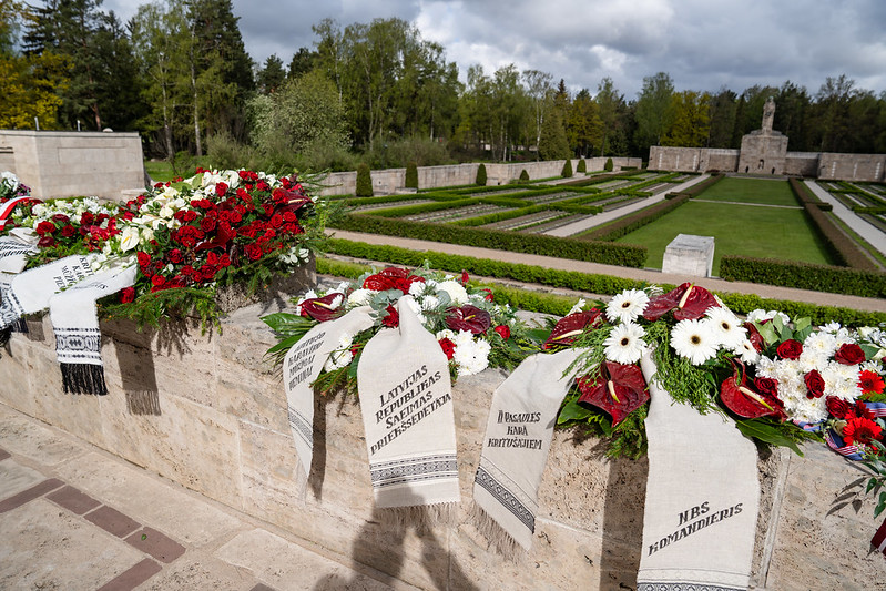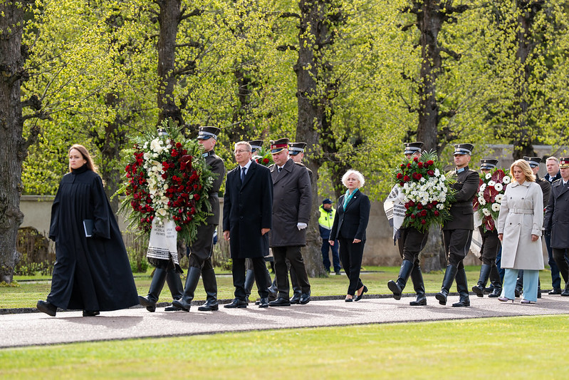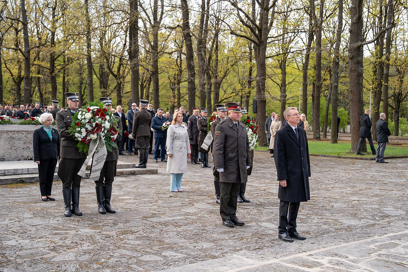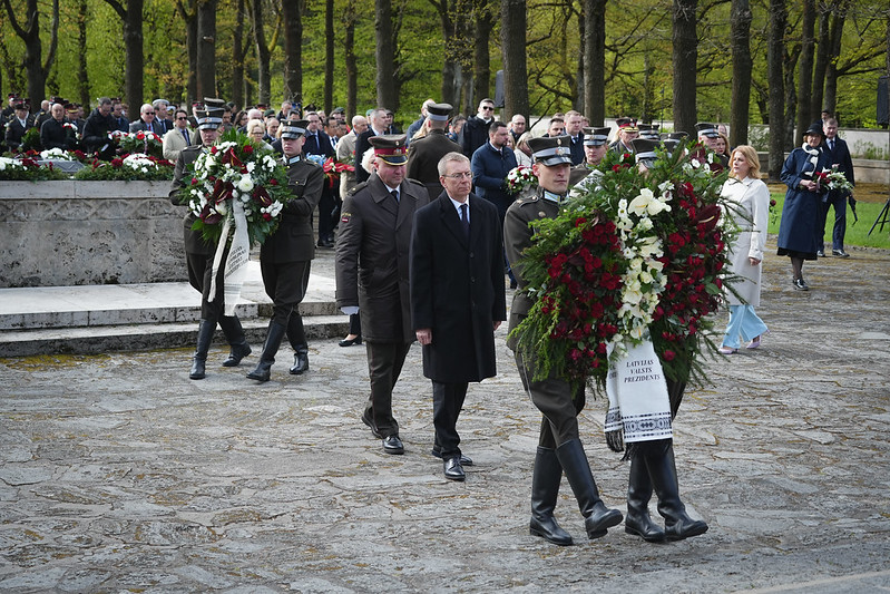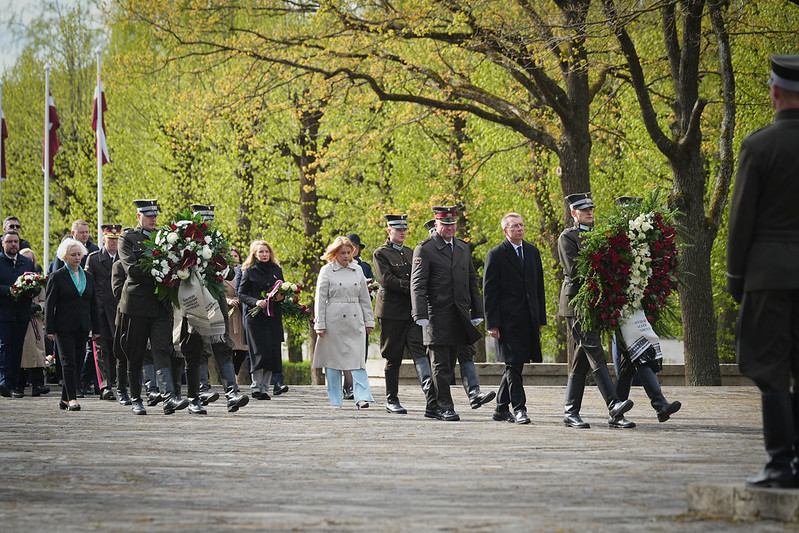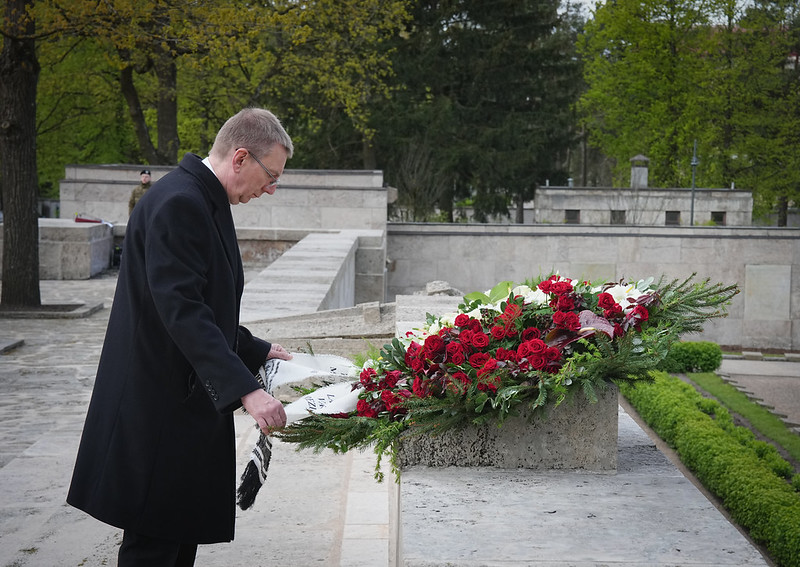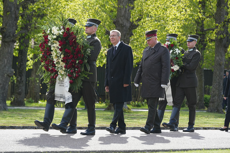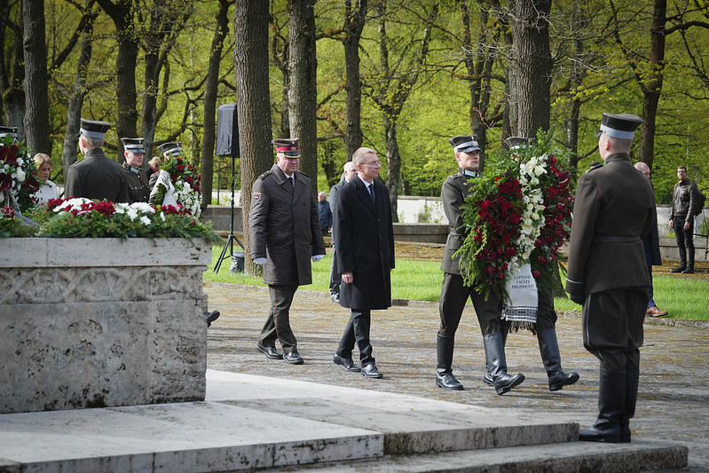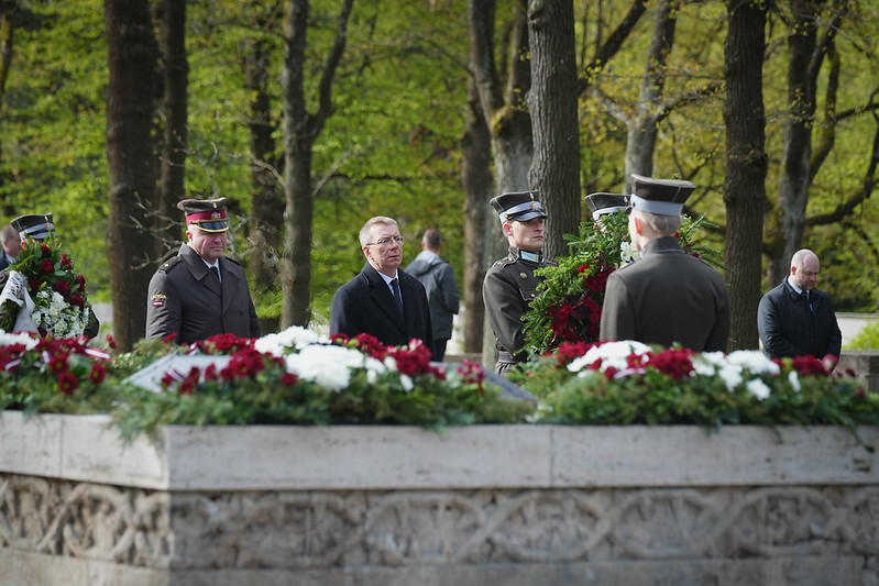 Valsts prezidents Edgars Rinkēvičs ceturtdien, 8. maijā, piedalījās svinīgajā ziedu un vainagu nolikšanas ceremonijā Rīgas Brāļu kapos, godinot nacisma sagrāves un Otrā pasaules kara upuru piemiņu.