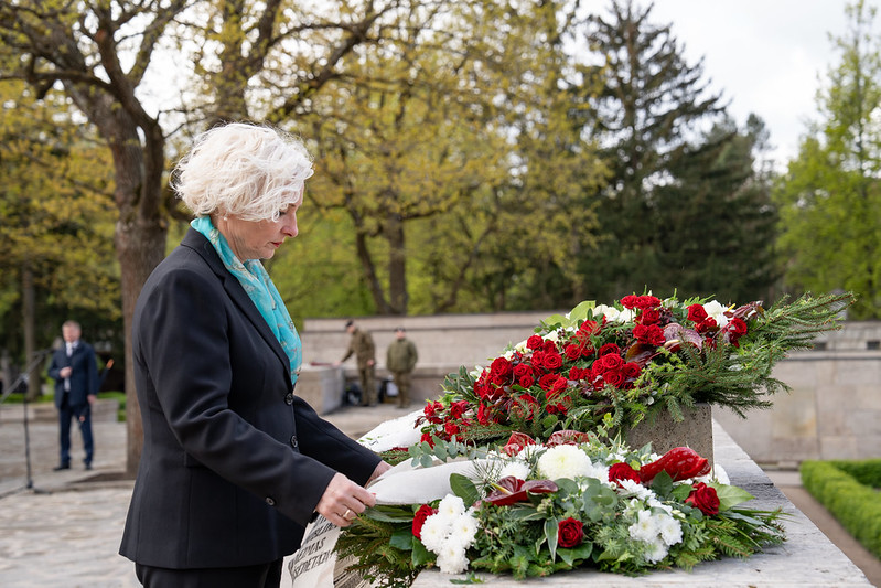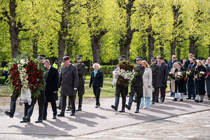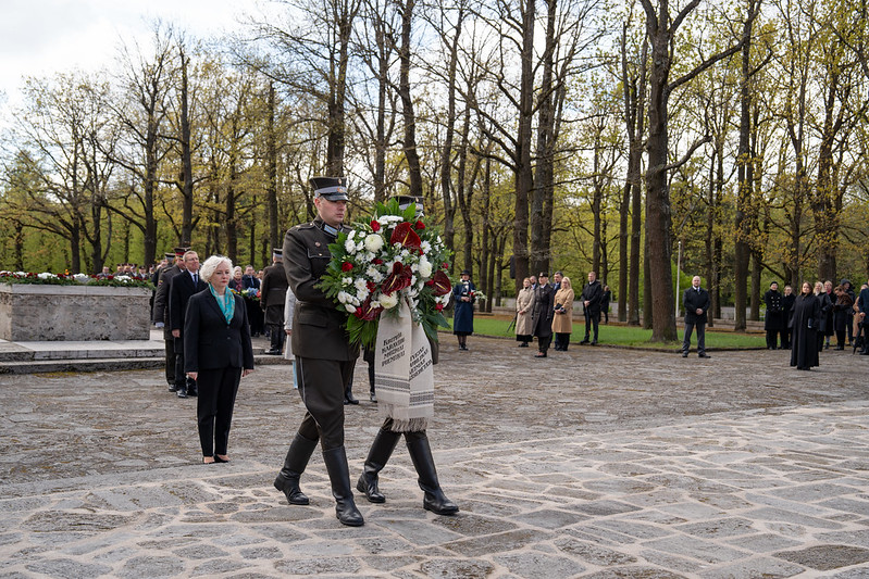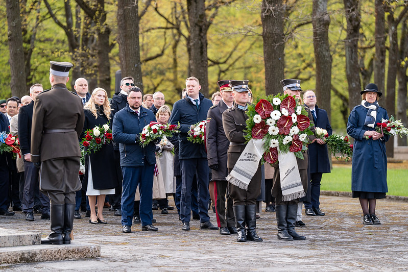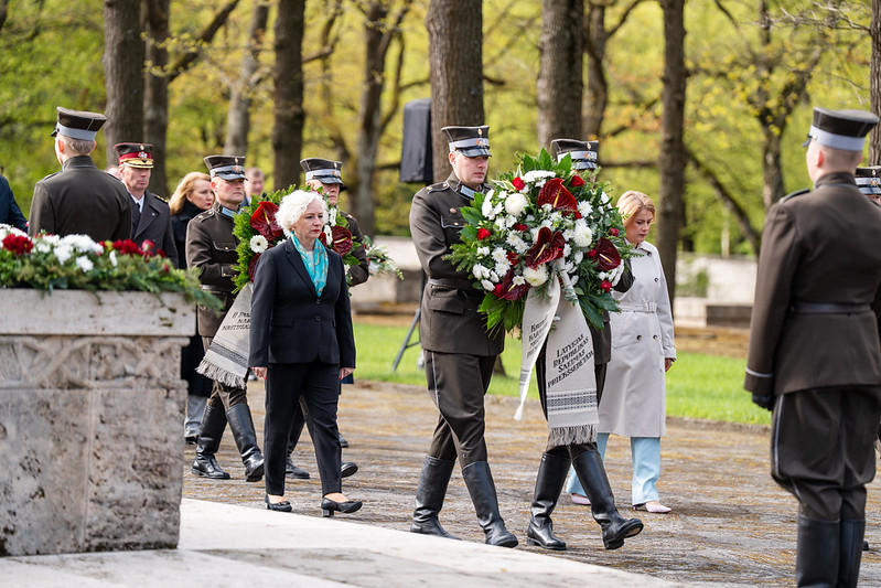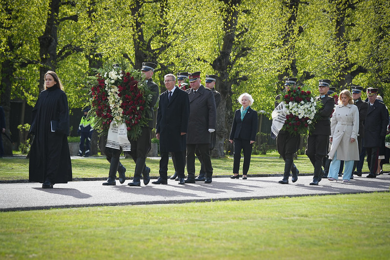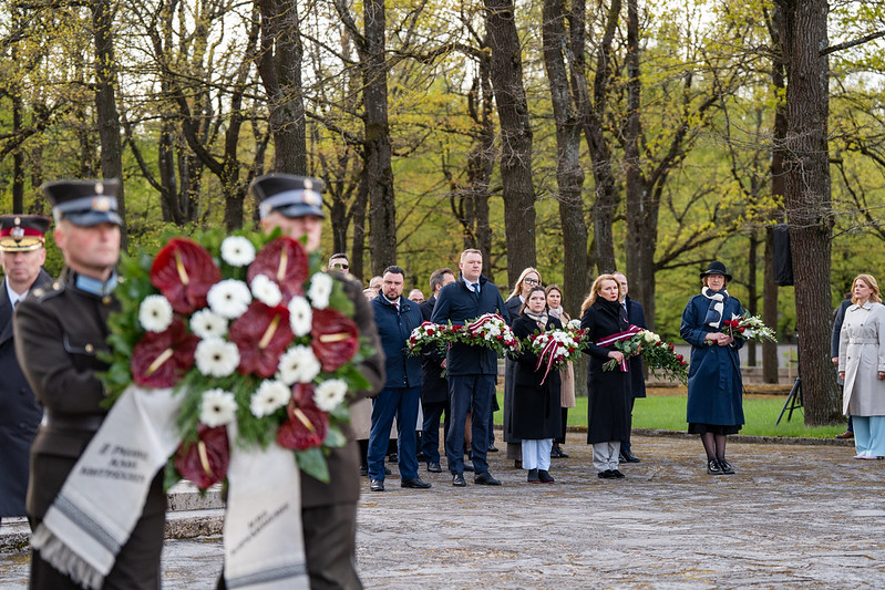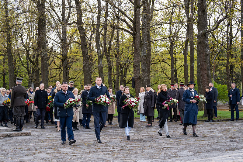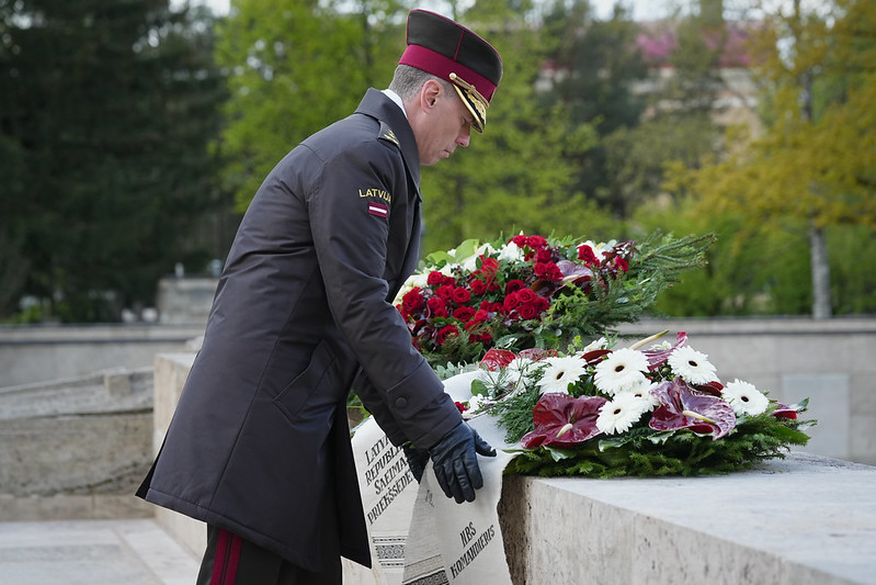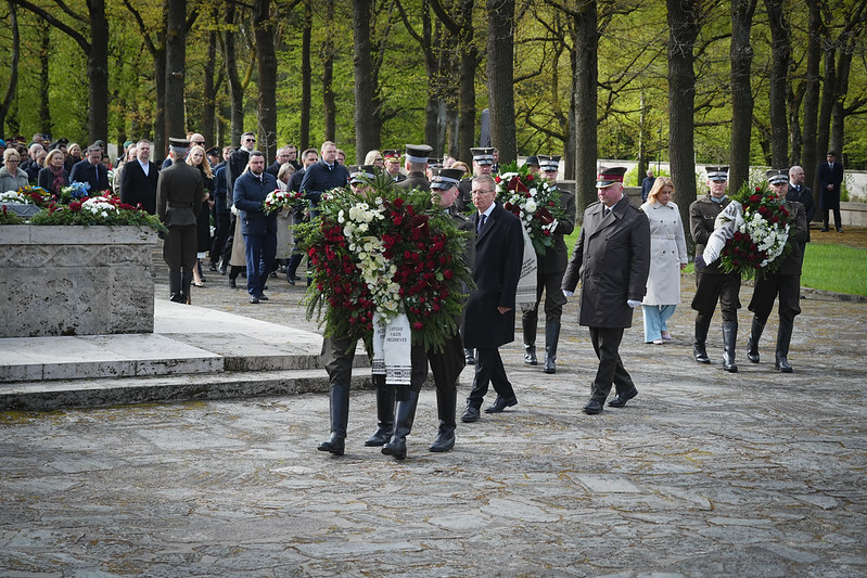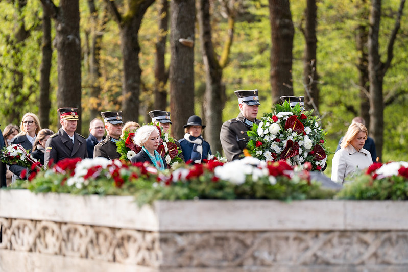 Valsts prezidents Edgars Rinkēvičs ceturtdien, 8. maijā, piedalījās svinīgajā ziedu un vainagu nolikšanas ceremonijā Rīgas Brāļu kapos, godinot nacisma sagrāves un Otrā pasaules kara upuru piemiņu.
