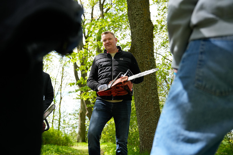 Neatkarības atjaunošanas deklarācijas 35.gadadienai veltītajā pavasara talkā Saeimas Prezidija locekļi, deputāti un darbinieki sestdien, 10.maijā, saposa Jāņa Čakstes dzimtas māju “Auči” apkārtni.