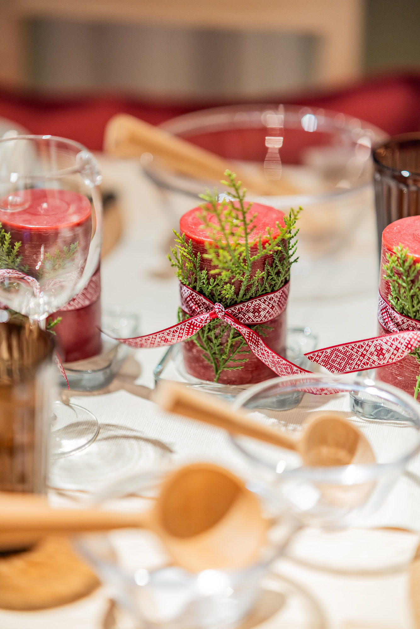 Dekorēšanai izvēlies egļu zarus, ogas un ziedus. “Gatavojoties svinībām, vari apvienot patīkamo ar lietderīgo un uzaicināt visu ģimeni kopīgā pastaigā, lai salasītu dabā pieejamos elementus galda dekorēšanai,” iesaka Rimkus.